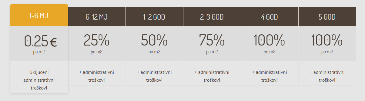 Zakupnina za poslovne prostore usklađena je s tržišnom cijenom, a subvencionirane cijene najma ovise o vremenu provedenom u inkubatoru, tako da najamnina iznosi